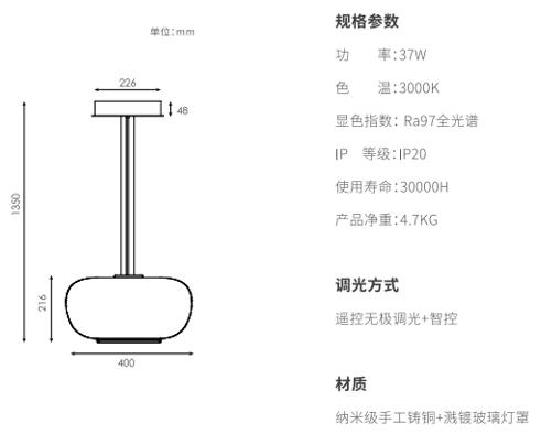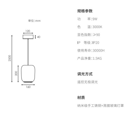 产品简介:手工吹制高硼硅玻璃,,,圆润柔和;在内部的上路光透过玫瑰金色网格铸铜件投射出类似烛火的效果,,,,在空间里显得更加灵动,,,,外层玻璃采用溅镀金属质感,,自下而上渐消,,,,同时镜面镀层折射环境光线,,使产品更加轻盈通透不压抑,,,下路光采用直下光,,满足1.5米圆桌面充足照明。。同时设计有防眩格栅,,,桌面边缘的视线高度不会有直接光线照射到,,体验舒适。。。